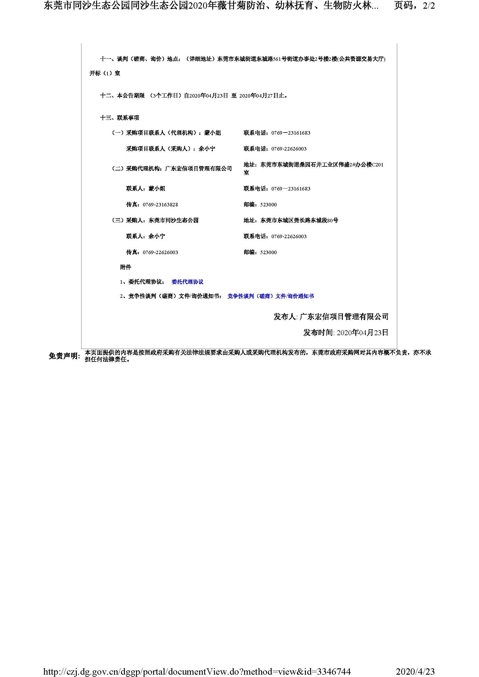 同沙生态公园2020年薇甘菊防治、幼林抚育、生物防火林带抚育采购项目竞争性磋商公告