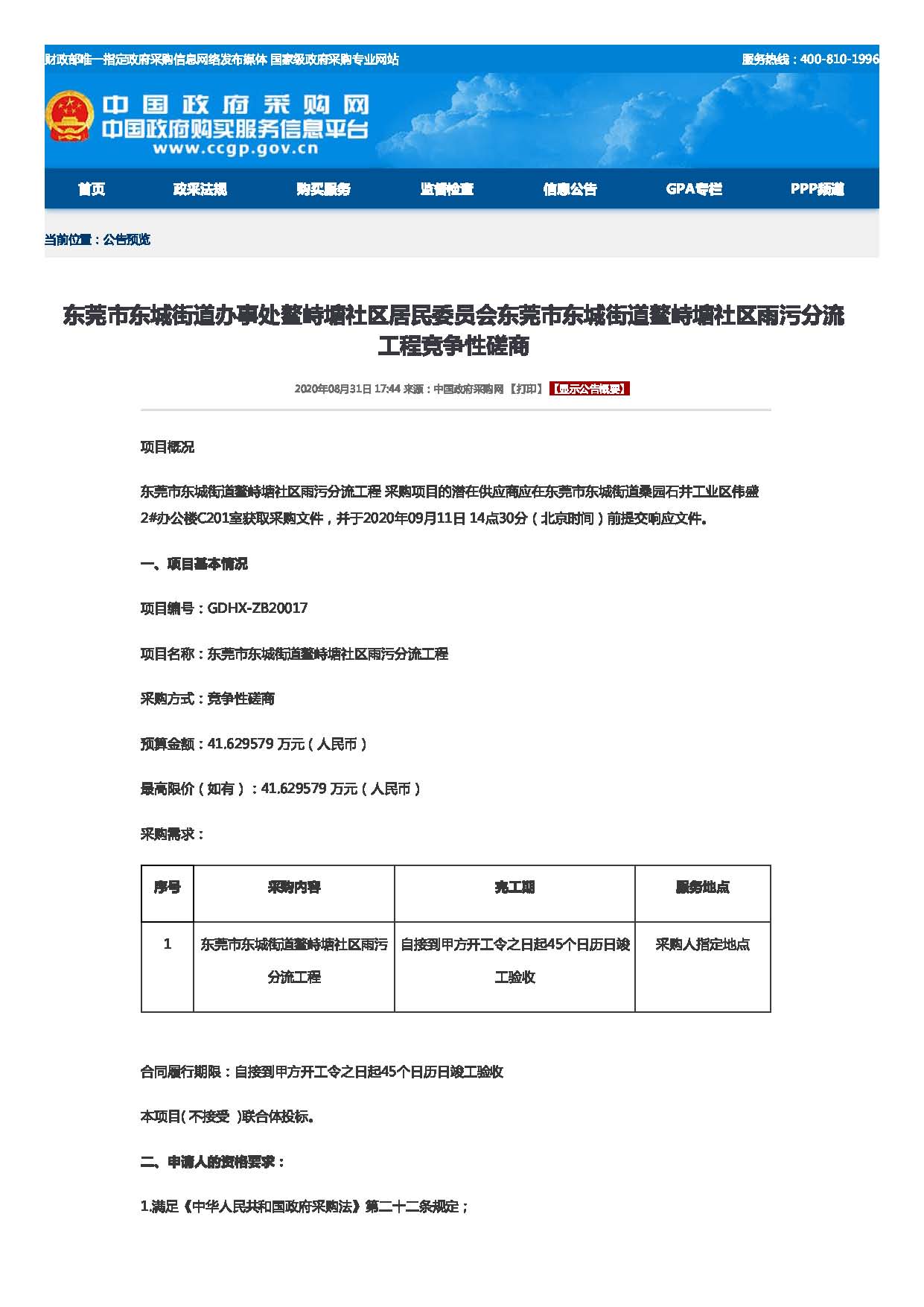 政府采购项目招标公告